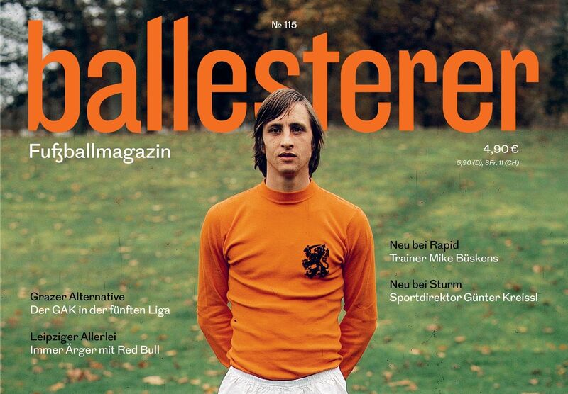 Die allererste ballesterer-Ausgabe hatte ein oranges Cover, die Taktikrubrik heißt nicht zufällig „Taktik total“, und die Werksmannschaft spielte jahrelang in orangen Trikots – alle mit der Nummer 14. Der im März verstorbene Johan Cruyff prägte nicht nur den Fußball wie kaum ein anderer, sondern auch das österreichische Fußballmagazin. Für den aktuellen Schwerpunkt zum niederländischen Spieler, Trainer und Fußballweisen wurde mit Dietrich Schulze-Marmeling der wohl bekannteste Cruyff-Experte im deutschsprachigen Raum gewonnen. Er schildert Cruyffs Karriere vom dünnen Straßenkicker in Amsterdam zum Propheten des Offensivfußballs. In Amsterdam hat Tobias Müller mit Bennie Muller einen ehemaligen Ajax-Spieler getroffen, der sich an die große Klappe des jungen Cruyff und das Amsterdam der 1960er Jahre erinnert.