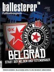 Fünf Fans von Roter Stern und Partizan erzählen über einen Staat, den es nicht mehr gibt, von Vereinen, die ihre Blütezeit hinter sich haben und Menschen, die viel Leid gesehen haben. Den Schwerpunkt über die »Stadt der Helden und Totengräber« komplettieren ein Rückblick auf den Meistercupsieg von Roter Stern 1991 sowie eine Analyse der rätselhaften Todesumstände des französischen Fußballfans Brice Taton und des folgenden Prozesses gegen Partizan-Fans.