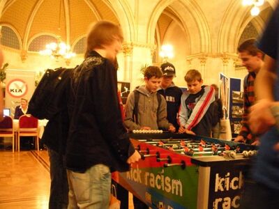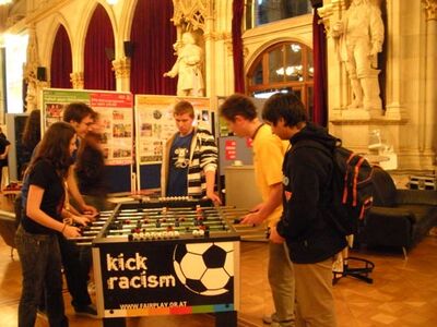 FairPlay-vidc war mit einem Informationsstand mit dabei und stellte einen Antirassismus-Wuzzler für die Jugendlichen zur Verfügung. Der Wuzzler war ein großartiger Anziehungspunkt und war den ganzen Tag hindurch in Betrieb.