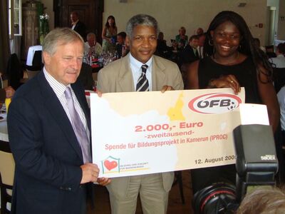 Wenige Stunden vor Anpfiff der freundschaftlichen Begegnung gegen das internationale Staraufgebot rund um Samuel Eto'o überreichte der Österreichische Fußballbund heute in Klagenfurt eine Spende über 2.000 Euro, um in Kamerun die Errichtung eines Lehrausbildungszentrums für Waisenmädchen zu unterstützen.
