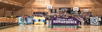 In Österreich kam es schon Anfang Jänner mit dem großen Fanturnier der Fußballfans gegen Homophobie zu einem Auftakt für das Aktionsmonat. Den Nachbericht zur Veranstaltung und viele Bilder findet ihr auf der Facebook-Seite der <link https://www.facebook.com/ffghoe - external-link-new-window "Opens external link in new window">Fußballfans gegen Homophobie Österreich</link>