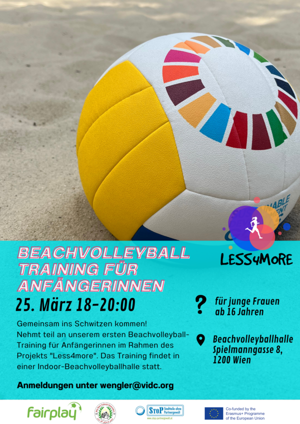 Komm zum kostenlosen Training im Rahmen des Projekts Less4more und nutze die Gelegenheit von einem Profi zu lernen. Das Training findet in einer Indoor-Beachvolleyballhalle statt.