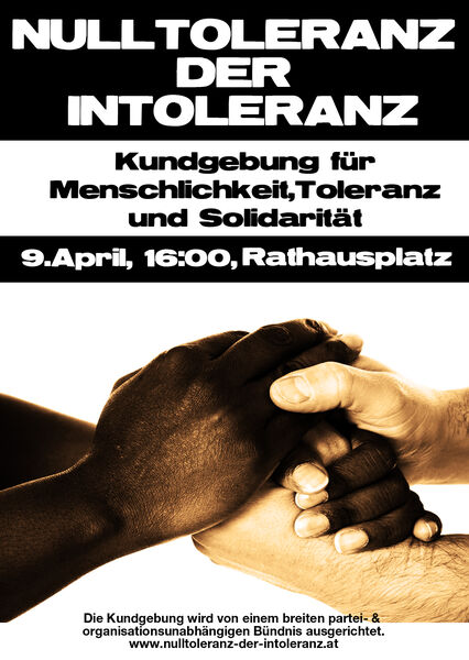 Ins Leben gerufen wurde die Veranstaltung über die Facebook-Gruppe „‘Nulltoleranz-der-Intoleranz‘-Kundgebung 9.4.“, der mittlerweile über 420 UnterstützerInnen angehören.