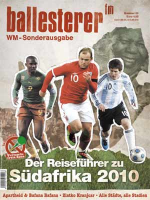 Im hundertseitigen WM-Reiseführer werden nicht nur das Turnier und seine Teilnehmer, sondern auch das Veranstalterland, dessen Geschichte und BewohnerInnen näher beleuchtet. Der Redaktion des ballesterer fm war es wichtig, den südafrikanischen Fußball in möglichst vielen Facetten zu behandeln: von den Auswirkungen der Apartheid und den Widerständen dagegen über die niedrige Erwartungshaltung gegenüber der »Bafana Bafana« bis hin zu den negativen Auswirkungen, die die WM für viele Südafrikaner mit sich bringt. Auf dem internationalen Parkett hat die Redaktion mit Zlatko Kranjcar, dem deutschen TV-Moderator Arnd Zeigler und dem österreichischen Südafrika-Export Walter Rautmann gesprochen, potenzielle WM-Stars wie Wayne Rooney, Lionel Messi und Marcos Senna porträtiert, die Weltmeister des Herzens und Schreckens gewählt sowie legendäre Geschichten zu dänischen, nordkoreanischen und amerikanischen WM-Helden ausgegraben.