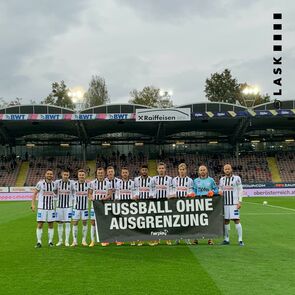 - Damit eigenständige Stadionaktionen machen (z.B. Material im Stadion verteilen, SpielerInnen laufen mit einem Transparent ein und/oder halten vor dem Ankick „SOLIDARITÄT – Fußball Ohne Ausgrenzung“ Karten hoch, Statements der SpielerInnen vor dem Spiel, Stadiondurchsagen etc.)
